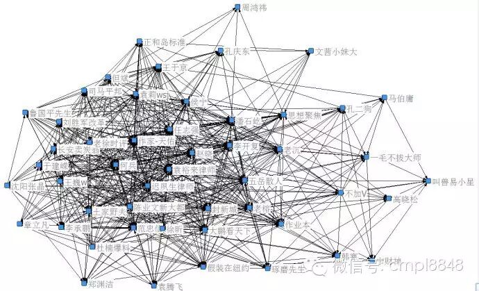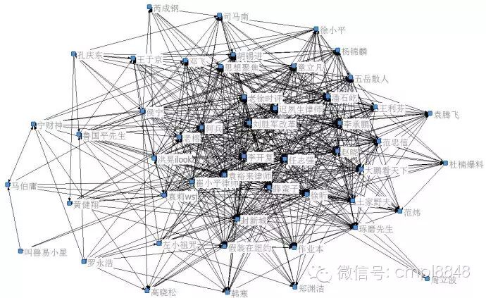 网络治理前的微博舆论生态中,50位意见领袖高密度互动,@李开复、@任志强、@徐昕、@薛蛮子、@潘石屹、@老徐时评、@何兵,以及多位律师,成紧密互动关系的重要节点。百万到千万以上粉丝量的意见领袖占据核心地位,话语权的联动和影响力的增补,仍是这个阶段的主流。